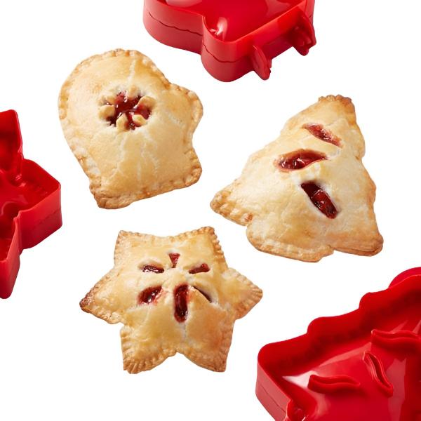 Adăugați o notă unică, festivă prăjiturilor dvs. cu trei forme interesante – fulg de zăpadă, mănușă și pom de Crăciun.
